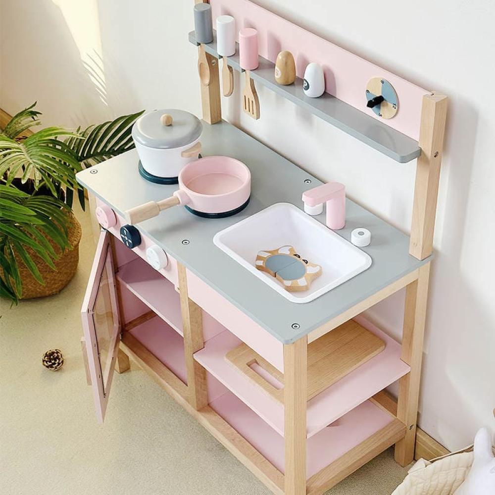 مطبخ اللعب الخشبي، يمكن لأطفالك تحضير أي وجبات يرغبون فيها. سيستخدمون خيالهم لإعداد العديد من الوجبات الفاخرة وكذلك الوجبات الصحية الخفيفة. يمكننا ان نضمن لك انهم سيحصلون على متعة فائقة عند اللعب معهم ولكن لا يمكننا ضمان انهم سيُقدمون لك طعاماً صالحاً وقابلاً للأكل.